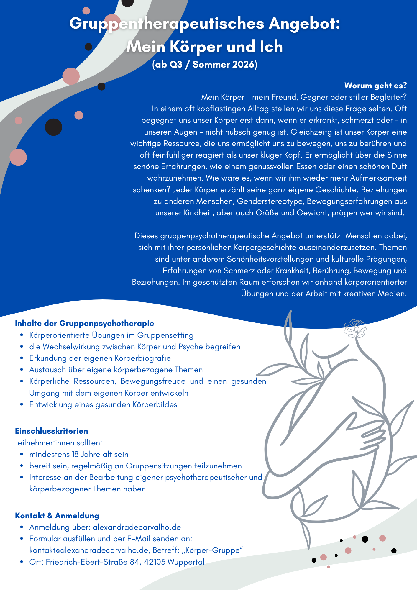 Diese Gedanken sind sehr verständlich. Gleichzeitig bietet die Arbeit in Gruppen besondere Chancen und Vorteile. In einer therapeutisch begleiteten Gruppe treffen Menschen aufeinander, die ähnliche Erfahrungen, Themen oder Fragestellungen mitbringen. In einem geschützten und wertschätzenden Rahmen entsteht die Möglichkeit, Erfahrungen zu teilen, sich wiederzuerkennen und voneinander zu lernen.